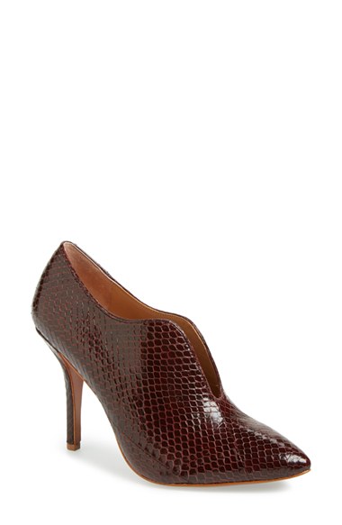 Rich snakeskin-embossed leather shapes the vintage-inspired lines of a pointy-toe bootie. Color(s): bordo, nero. Brand: VC SIGNATURE. Style Name: VC Signature 'Carolena' Leather Bootie (Women). Style Number: 449900.