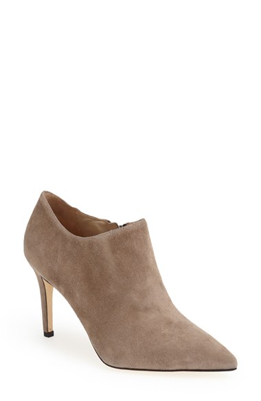 A sleek, sophisticated silhouette defines a pointed-toe bootie cast in glazed leather. Color(s): bark suede, black, elephant suede. Brand: Via Spiga. Style Name: Via Spiga 'Cachet' Pointy Toe Bootie (Women). Style Number: 81648.