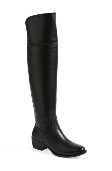 A cleanly styled over-the-knee boot is designed in soft nappa leather and finished with an elastic inset at the back for a comfortable fit. Color(s): black, black leather. Brand: VINCE CAMUTO. Style Name: Vince Camuto 'Baldwin' Over the Knee Lea