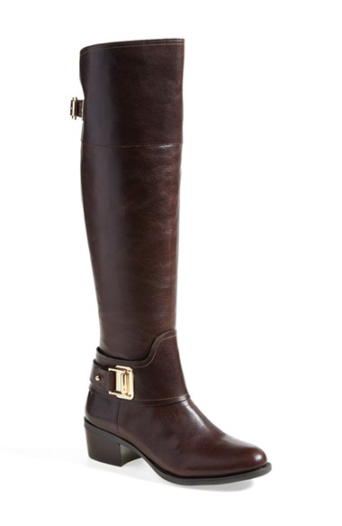 The perennially chic riding boot steps out in textured leather with gleaming logo hardware at the ankle and cuff for a signature finish. An essential wardrobe piece. Color(s): black, brown. Brand: VINCE CAMUTO. Style Name: Vince Camuto 'Basira'