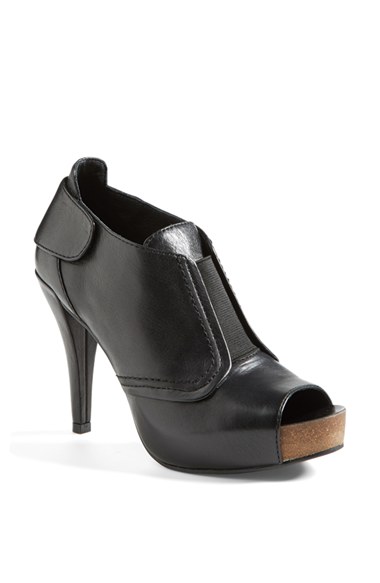 An elasticized panel and an adjustable strap perfect the fit of a distinctive leather bootie that brings on the urban attitude. Color(s): black, burly brown. Brand: VINCE CAMUTO. Style Name: Vince Camuto 'Pernot' Peep Toe Bootie. Style Number: 466107.