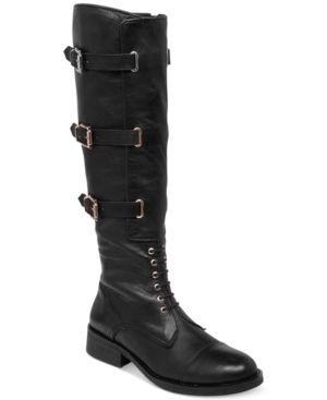 Decorated with buckled straps all along the tall shaft, the Fenton riding boots are perfectly-suited for all of your cool-weather needs. By Vince Camuto.