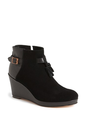 A mixed-texture bootie shaped from leather and suede is lofted on a comfortable wedge and finished with a tassel-tipped ankle strap. Color(s): black, rust. Brand: Wolverine. Style Name: Wolverine 1000 Mile by Samantha Pleet 'Socialite' Suede &am