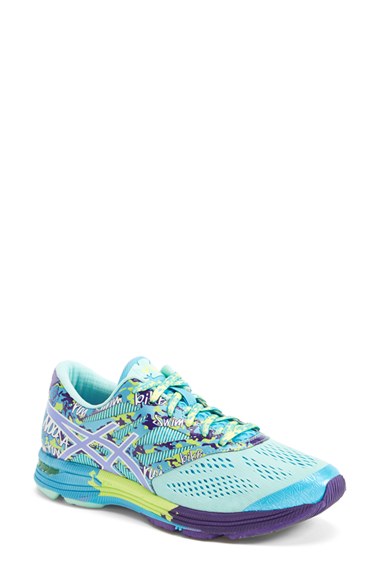 Enjoy the newest in shoe technology with ASICS GEL Noosa Tri 10, combining seamless, lightweight construction with a host of triathlon-specific features and a bright, glow-in-the dark print. An open mesh upper and perforated sock liner optimize moisture drainage and improve breathability, and the elastic lacing system eases on-and-off to make transitions a breeze. The Dynamic DuoMax Support System enhances stability and support, while an Impact Guidance System employs linked components to enhance the foot's natural gait from heel strike to toe-off. Color(s): black/ gold ribbion, blue/ lavender/ turquoise, coral/ yellow/ ice blue, navy/ yellow/ pink, pnk glow/ aqua/ fuchsia, yellow/ pink. Brand: ASICS. Style Name: ASICS 'Gel Noosa TRI 10' Running Shoe (Women). Style Number: 811589.