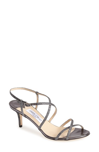 Delicate, twinkling straps crisscross atop a barely there sandal set on a centered kitten heel-making it perfect for dancing the night away. Pre-order this style today! Add to Shopping Bag to view approximate ship date. You'll be charged only when your item ships. Color(s): anthracite. Brand: Jimmy Choo. Style Name: Jimmy Choo 'Elisa' Glitter Strap Sandal (Women). Style Number: 884814.