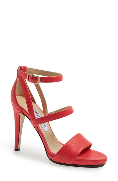 Suave straps and a bold, electric hue bring modern elegance to a platform sandal cast in finely grained leather. Pre-order this style today! Add to Shopping Bag to view approximate ship date. You'll be charged only when your item ships. Color(s): geranium. Brand: Jimmy Choo. Style Name: Jimmy Choo Leather Ankle Strap Sandal (Women). Style Number: 837730.