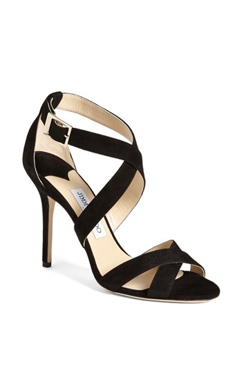 Graceful crossover straps top a soaring sandal crafted in Italy from lush suede. Color(s): black. Brand: Jimmy Choo. Style Name: Jimmy Choo 'Lottie' Sandal. Style Number: 943186.