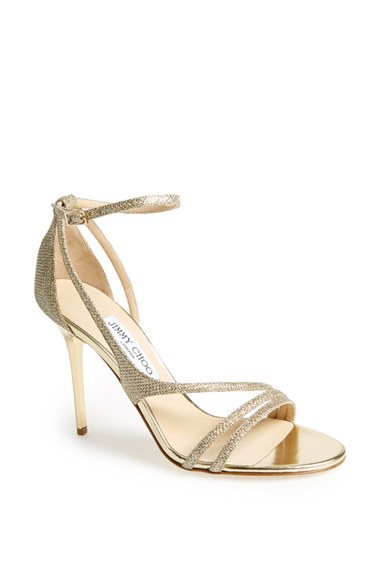Curvaceous metallic straps and a gilded stiletto heel enhance the drama of a scene-stealing sandal. Color(s): gold. Brand: Jimmy Choo. Style Name: Jimmy Choo 'Valdez' Sandal. Style Number: 412593.