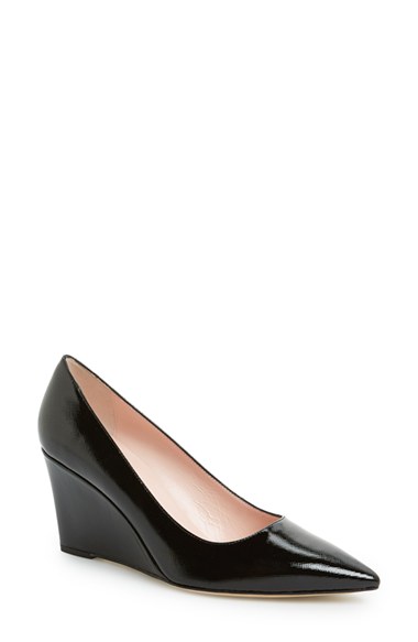 Sharp styling and clean lines, from the pointy toe and slim wedge heel to the Saffiano leather construction, give this glossy pump from kate spade a modern elegance. Color(s): black. Brand: kate spade new york. Style Name: kate spade new york 'jovia' pointy toe wedge pump (Women). Style Number: 838714.