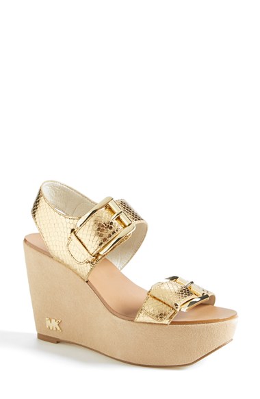 Women's MICHAEL Michael Kors 'Warren' Wedge Sandal, - Metallic $149.95 Style: 888922290965