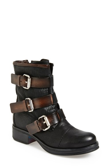 Contrast buckled straps amp up the moto-chic vibe of a rugged bootie shaped in heavily distressed leather. Color(s): black. Brand: YKX. Style Name: YKX & Co. by Fantasy Leather Bootie (Women). Style Number: 83438.