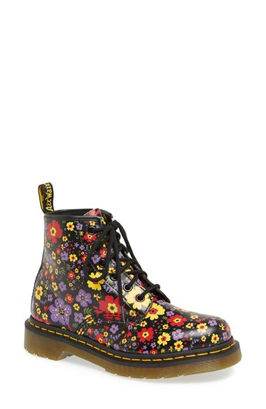 Dr. Martens '101' Floral Print Leather Boot (Women) Black Garden Vinta...