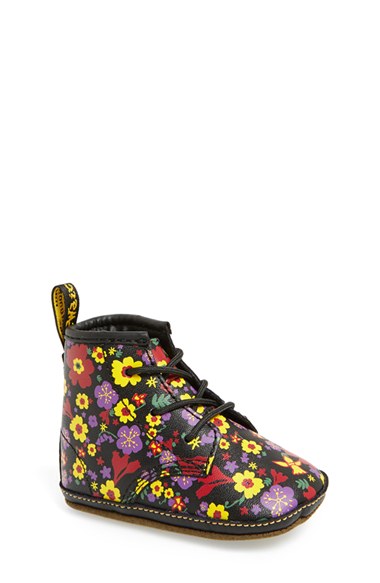Dr. Martens Flower Print Leather Crib Bootie (Baby) Black Vintage Garden Size