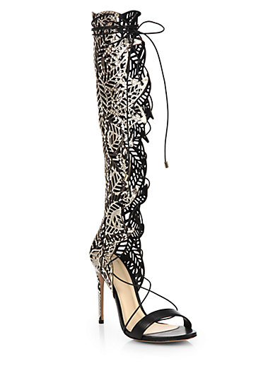 In Stock At: 1 Store Distance: 0 Miles SHOP NOW 1 Color Sergio Rossi Arabe Knee-High Leather Gladiator Sandals $1,869.40