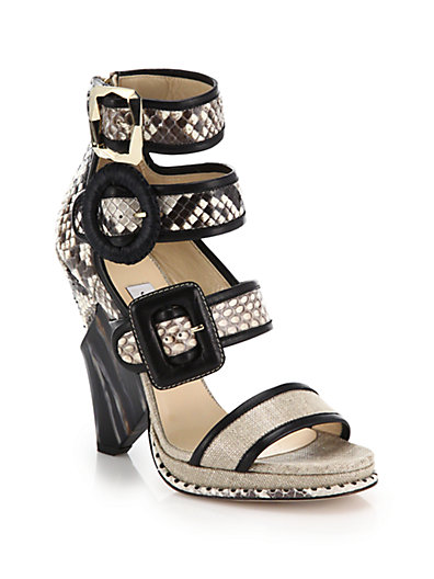 In Stock At: 1 Store Distance: 0 Miles SHOP NOW 1 Color Jimmy Choo Snakeskin, Leather & Linen Cutout-Wedge Sandals $2,420.90