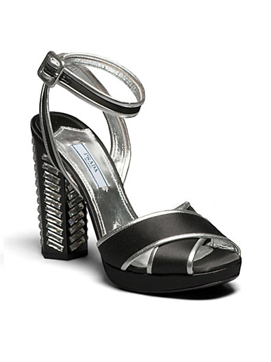 In Stock At: 1 Store Distance: 0 Miles SHOP NOW 1 Color Prada Crystal-Heel Metallic Leather-Trimmed Satin Sandals $1,599.20