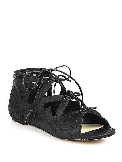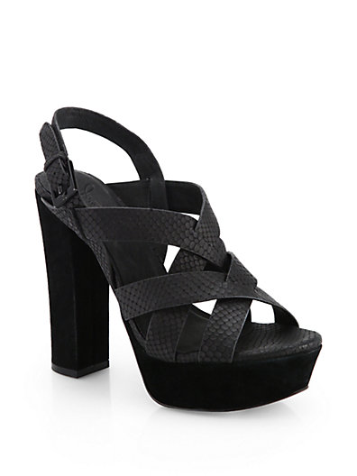 In Stock At: 1 Store Distance: 0 Miles SHOP NOW 1 Color Rebecca Minkoff Mali Snake-Embossed Leather and Suede Sandals $358.45