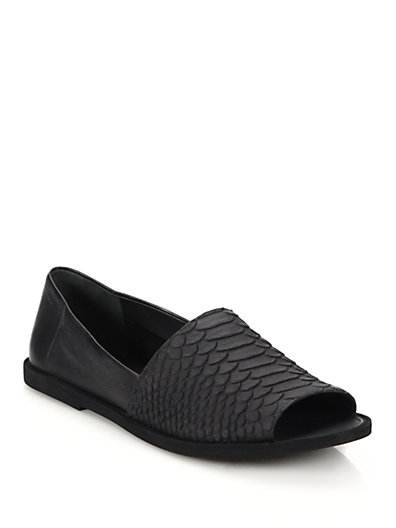 In Stock At: 1 Store Distance: 0 Miles SHOP NOW 1 Color Vince Open-Toe Snake-Embossed Leather Flats $275.73
