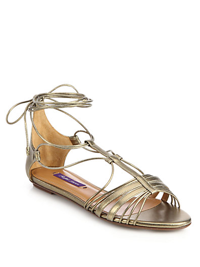 In Stock At: 1 Store Distance: 0 Miles SHOP NOW 1 Color Ralph Lauren Collection Mabelle Metallic Leather Flat Ankle-Tie Sandals $606.60