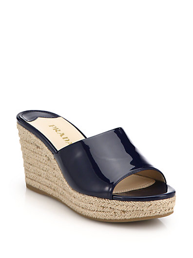 In Stock At: 1 Store Distance: 0 Miles SHOP NOW 3 Colors Prada Patent Leather Espadrille Wedge Mule Sandals $606.60