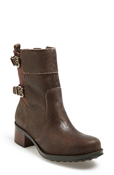 A waterproof finish and memory-foam insole add to the everyday ease of a striking utilitarian boot accented with dual buckle straps and an elastic gore back panel to ensure a custom fit. Color(s): black, brown distressed, khaki distressed. Brand: ANDRE ASSOUS. Style Name: Andre Assous 'Laura' Waterproof Leather Boot (Women). Style Number: 838208.