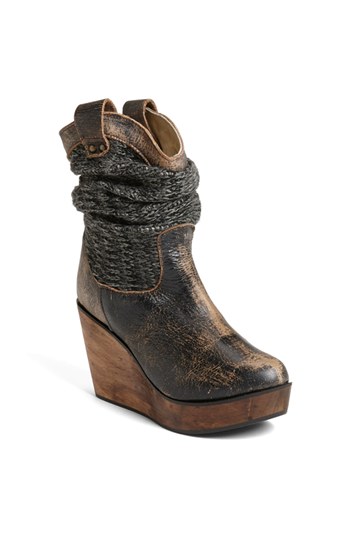 Sometimes you have to look back to move your fashion forward. This Western-influenced bootie combines a sweater-like shaft with a heavily distressed leather vamp and a wooden wedge, juxtaposing classic elements with cutting-edge eclecticism. Color(s): teak rustic. Brand: Bed Stu. Style Name: Bed Stu 'Bruges' Bootie. Style Number: 991442.