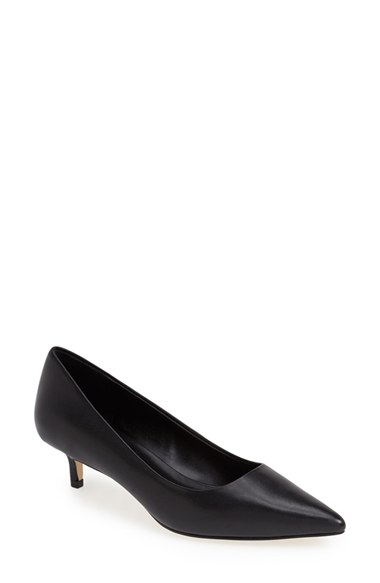 A sophisticated pump with a slender kitten heel is shaped with a pretty pointed toe. Color(s): black leather, black suede, camel suede, electric blue suede, natural/ black, navy leather, taupe leather, wine leather. Brand: Charles David. Style Name: Charles David 'Damian' Pump (Women). Style Number: 813195.