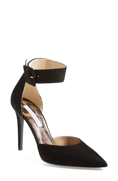An elegant ankle strap tops a seductive pointy-toe pump crafted in lush suede. Color(s): black suede, natural leopard print suede. Brand: DIANE VON FURSTENBERG. Style Name: Diane von Furstenberg Buckle Pump (Women). Style Number: 811267.