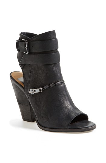 The season-essential, open-ended bootie is topped with a gritty zip and burnished belts for a double dose of edge. Color(s): black, moss. Brand: Dolce Vita. Style Name: Dolce Vita 'Nayla' Open Toe Leather Bootie (Women). Style Number: 844100.