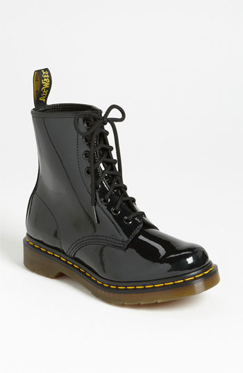 A signature sole grounds the offbeat style of an iconic lace-up boot. Color(s): black patent leather. Brand: Dr. Martens. Style Name: Dr. Martens '1460' Boot. Style Number: 531985.
