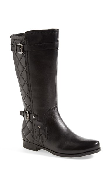 A quilted back panel lends lush texture to a gorgeous leather tall boot polished with shining buckles. Color(s): bark calf leather, black calf leather. Brand: Earthies. Style Name: Earthies 'Sevilla' Boot (Women). Style Number: 765752.