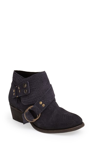 Snake-embossed leather shapes an on-trend bootie designed with a chic overlay and an antique-buckled strap. Color(s): black, taupe. Brand: Free People. Style Name: Free People 'Tortuga' Leather Bootie (Women). Style Number: 466639.
