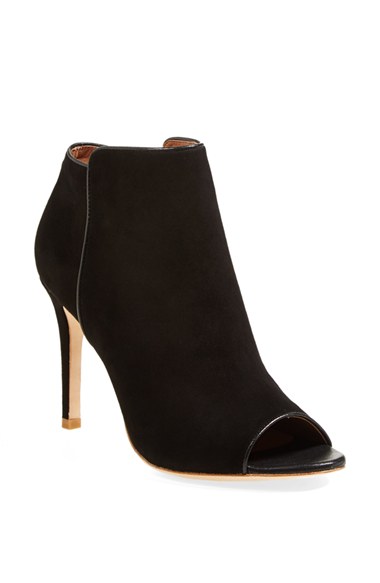 Velvety-soft suede shapes a stunning open-toe bootie edged with smooth leather piping for subtle contrast. Color(s): black. Brand: Joie. Style Name: Joie 'Gwen' Open Toe Suede Bootie (Nordstrom Exclusive) (Women). Style Number: 458506.
