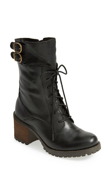 It's all about the lug sole for fall, and these military-inspired leather boots deliver in serious style. The stacked heel, adjustable buckled straps and lived-in vibe complete the on-trend look. Color(s): black, bourbon, dark earth. Brand: Lucky Bra