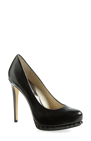 Enameled studs gleam along the sole of an alluring almond-toe pump fashioned with a hidden platform. Color(s): black/ black. Brand: MICHAEL Michael Kors. Style Name: MICHAEL Michael Kors 'Ailee' Leather Platform Pump (Women). Style Number: 839644.