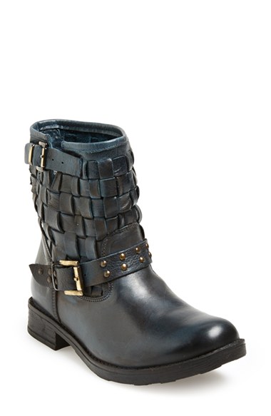 Miz Mooz 'Airish' Woven Leather Moto Bootie (Women) Jeans/ Dark Brown Size $199.95 Style: 886547370819