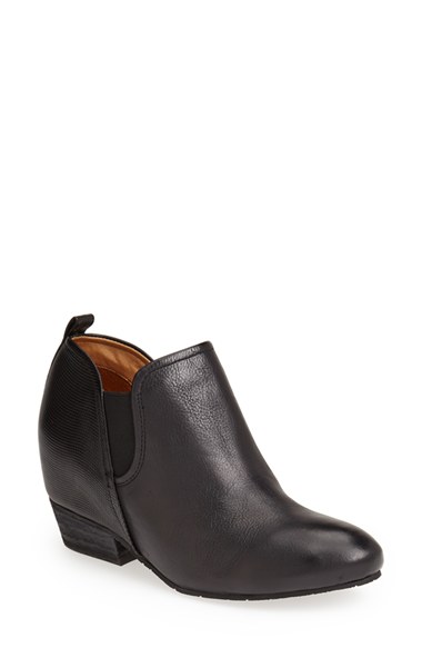 A burnished leather toe adds a touch of Western charm to a hidden-wedge Chelsea bootie fashioned with elasticized panels for an easy fit. Color(s): black, cordovan, spice girl tan. Brand: Naya. Style Name: Naya 'Felix' Leather Bootie (Women). St