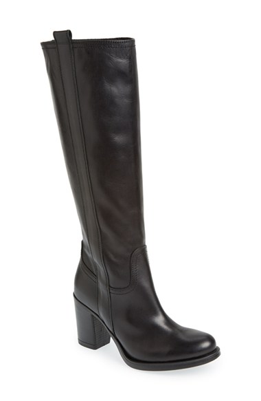 Hand-brushed leather shapes a graceful, Western-inspired tall boot set on a chunky stacked heel. Color(s): black, brown. Brand: Summit by White Mountain. Style Name: Summit by White Mountain 'Barnett' European Fit Leather Boot (Women). Style Number: 836353.