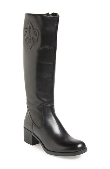 A stitched fleur de lis at the shaft adds an extra touch of sophistication to a quintessential riding boot cast in buttery-soft, hand-finished leather. Color(s): black, burgundy, taupe. Brand: Summit by White Mountain. Style Name: Summit by White Mountain 'Calverton' Leather Riding Boot (Women). Style Number: 836011.