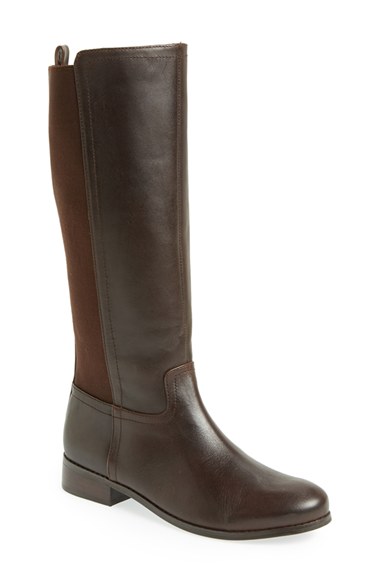 Dual gored panels create a custom fit for a equestrian-style boot cast in a sleek silhouette. Color(s): black, cognac. Brand: Trotters. Style Name: Trotters 'Signature Lucia' Leather Riding Boot (Wide Calf) (Women). Style Number: 852131.