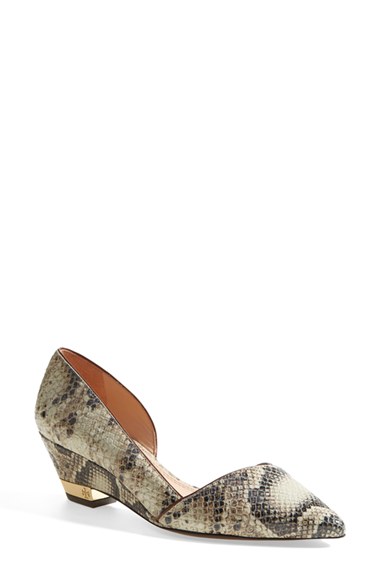 Tory Burch 'Mila' Snake Embossed Leather Demi Wedge Pump (Women) Natur...